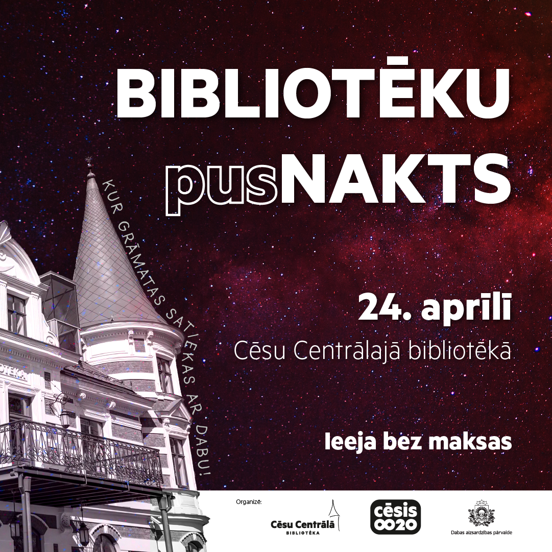 Šopavasar Cēsu Centrālā bibliotēka turpina atjaunoto tradīciju un 24. aprīlī aicina uz "Bibliotēku pusNakti", kur grāmatas satiekas ar dabu.