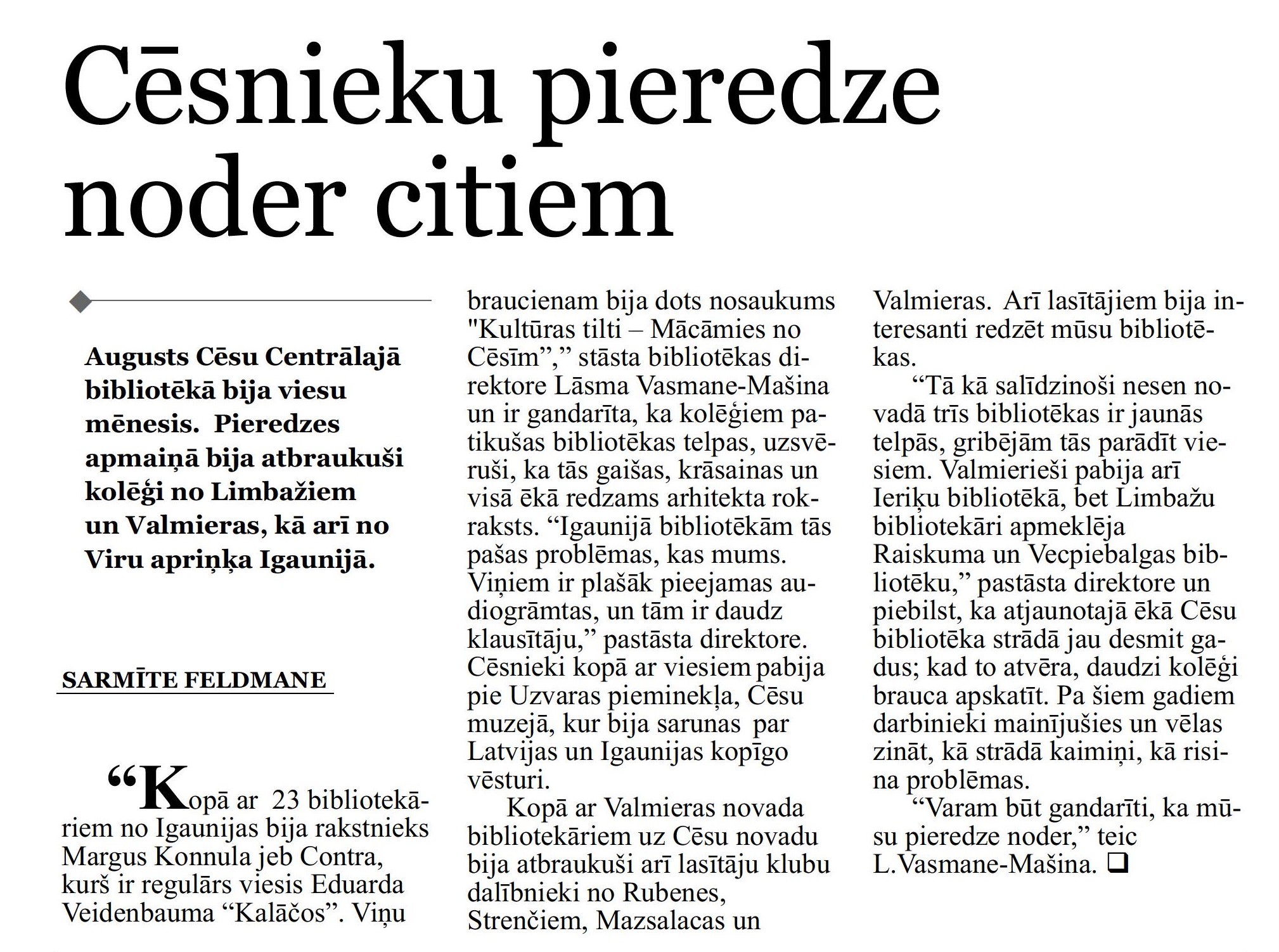 Neredzīgo bibliotēka iekļausies Cēsu bibliotēkas sastāvā